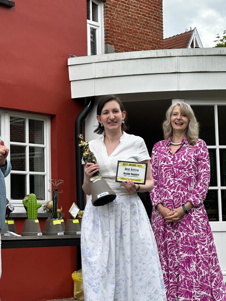 Voting has now closed for the 2023-24 Brussels United Theatre Technician Awards (fondly known as the Butties). The votes have been counted and the awards awarded (ably hosted this year by Brian Hartnett and Michelle van der Straaten, pictured). Here is the list of the nominees in each category, with the award winner first and highlighted in bold and underlined. The other nominees appear in alphabetical order.